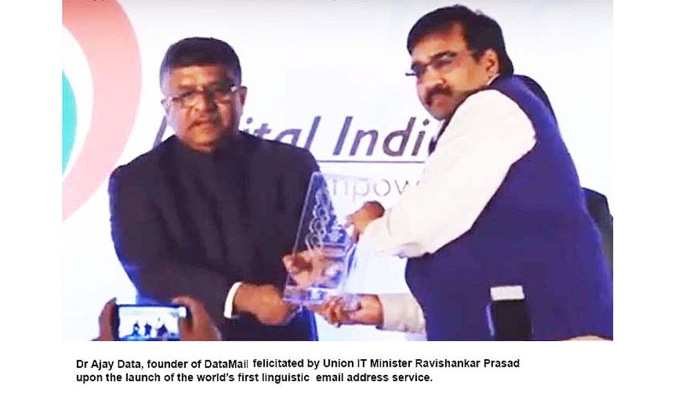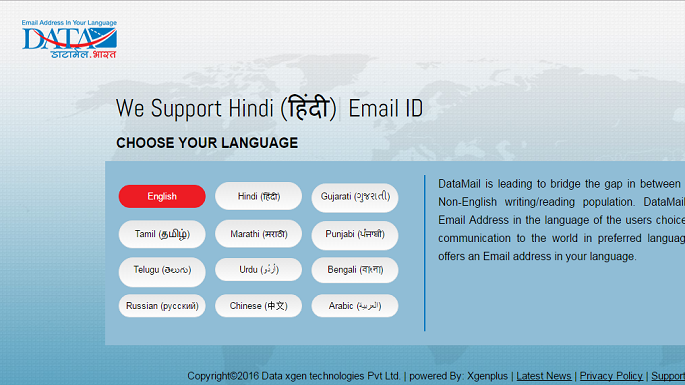 One of India’s largest IT services organisation, DATA XGen Technologies Pvt Ltd, a group company of Jaipur-based Data Infosys in October had launched world’s first free linguistic email address for Smartphones under the name ‘DATAMAIL’ that allowed to create email id in eight Indian launguages — Hindi, Urdu, Gujarati, Punjabi, Tamil, Telgu, Bangali, Marathi, English; and three foreign languages — Arabic, Russian and Chinese. Sources: theindianxpress.com,avashya.com,dqindia.com