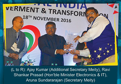 Ajay Data was felicitated with the prestigious GrahamBellAward for the best innovation in Enterprise Solution Category . The award was given by Dr. Jitendra Singh , Minister of State in PMO at annual Aegis Graham Bell Awards organized at NDMC Convention Centre. Parliament Street, New Delhi